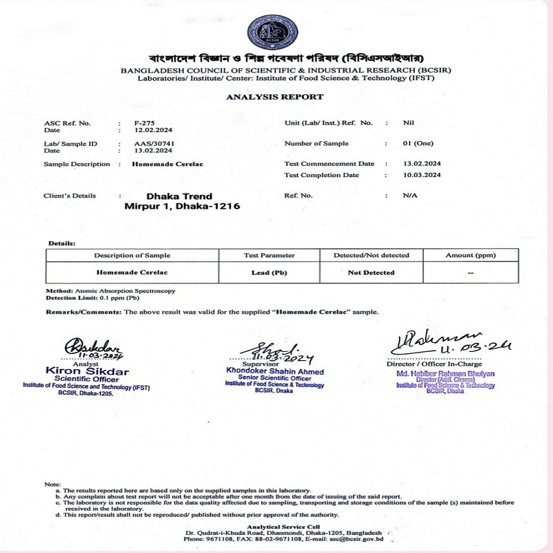 ✅ আমাদের হোমমেড সেরেলাক হতে পারে আপনার সন্তানের জন্য উত্তম সমাধান। এতে রয়েছে প্রচুর পরিমাণে খনিজ, ক্যালসিয়াম, আয়রন, জিঙ্ক, ওমেগা, প্রোটিন এবং প্রয়োজনীয় ভিটামিন, যা আপনার সন্তানের পুষ্টিহীনতা দূর করবে এবং সুস্বাস্থ্য গঠন করবে।
